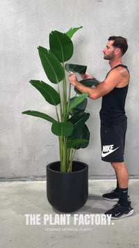Bold, upright, and tropical in essence, the 180cm artificial Strelitzia Nicolai (Bird of Paradise) is a favourite among interior designers for its sleek structure and broad, architectural leaves. With UV-treated foliage, it’s ideal for bright indoor spots or sheltered outdoor styling. At 180cm tall and 65cm wide, it delivers lush, low-maintenance greenery that draws the eye.